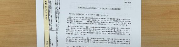 3月末まで受け付けをしました5省庁連名ポスターの改訂要望は、44件ありました。 ご意見を送ってくださった皆様、ありがとうございます。 こちらも参考に、カナリア・ネットワーク全国としての改訂要望書を作成 … 続きを読む 消費者庁へ、5省庁連名ポスター改訂要望書を送付しました