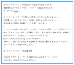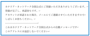 また、info@canary-network.org からの自動送信メールが受け取れるように設定をお願いいたします。
